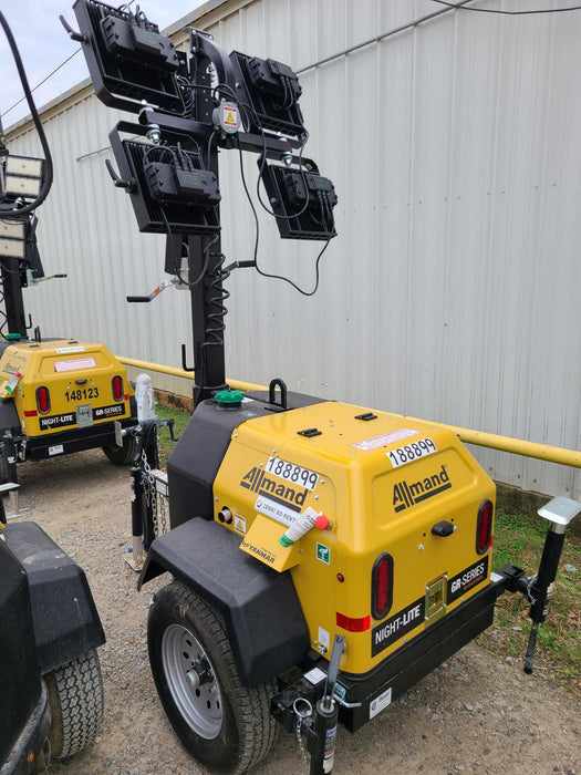 Machine Notes: Allmand NLV3GR (4) LED Light Fixture 350W, 23' Vertical Mast, 3kW Prime, Towable, Deep Sea L401, Leveling Jacks, Yanmar T4F 5.8hp
