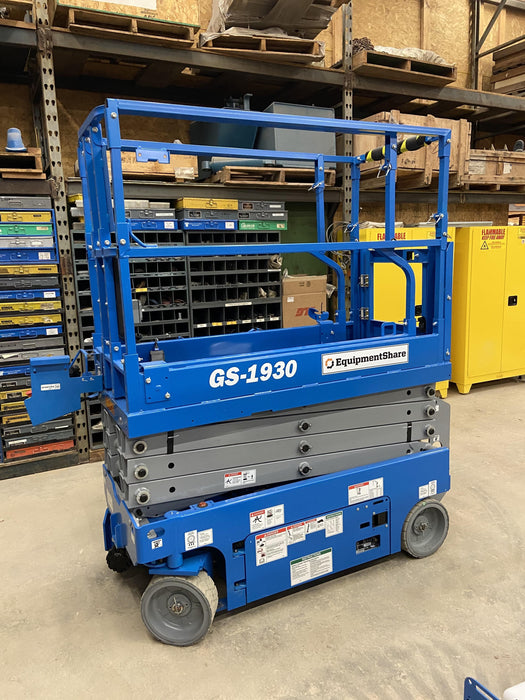 Machine Notes: 2020 Genie GS-1930 Solid Non Marking Tires, Beacon, Folding rails with half height swing gate