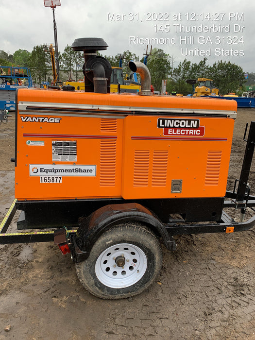 Machine Notes: 2021 Lincoln Electric Vantage 549X Ready Pak 3, ORANGE (includes trailer, cable rack, fender light kit)