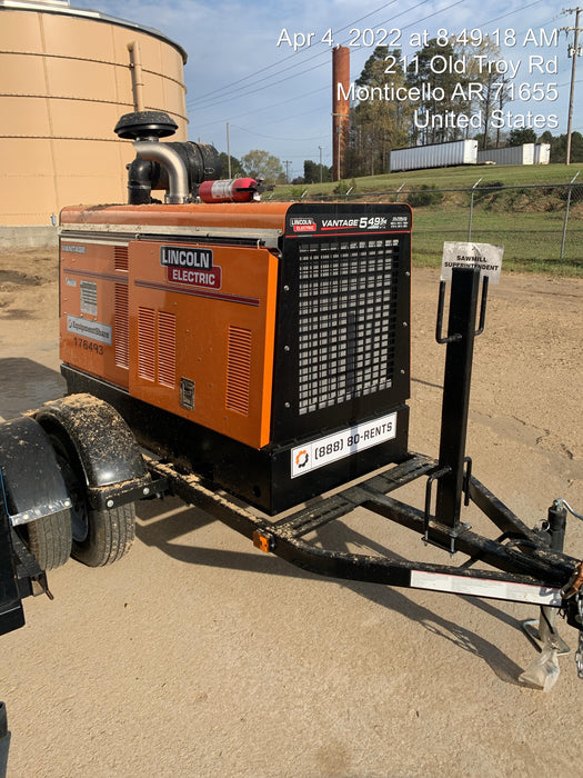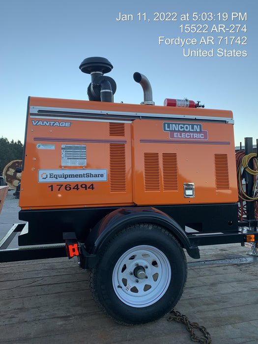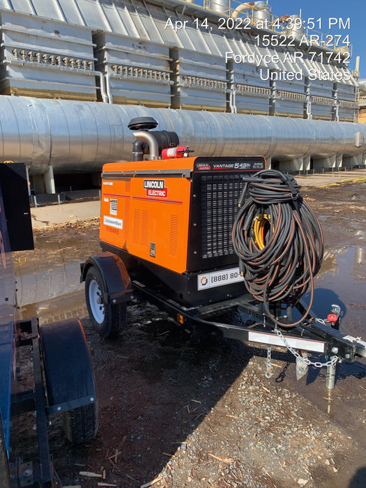 Machine Notes: 2021 Lincoln Electric Vantage 549X Ready Pak 3, ORANGE (includes trailer, cable rack, fender light kit)